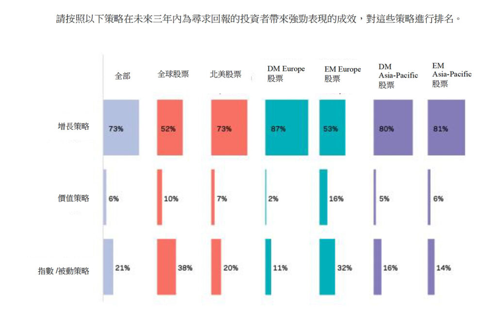 該研究還顯示,投資決策者對增長型投資的偏好高於價值型投資。 前者通常購買有潛力實現高於平均增長的優質股票,而後者的目標是購買表現不佳的公司,然後等待這些公司的經營業績和市場表現轉好。