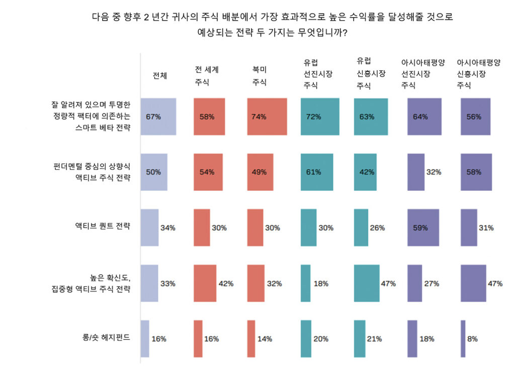 EquitiesFirst x Institutional Investor 연구에는 이러한 생각이 반영되어 있는데, 응답자들은 집중적 고확신도 전략이 선진시장보다 신흥 유럽 및 아시아태평양 시장에서 더 효과적일 것이라는 견해를 나타냈습니다.