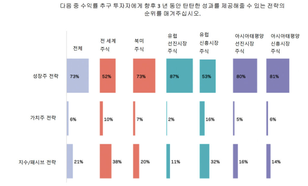 가치주보다 성장주를 중시하는 전략에 대한 높은 선호도