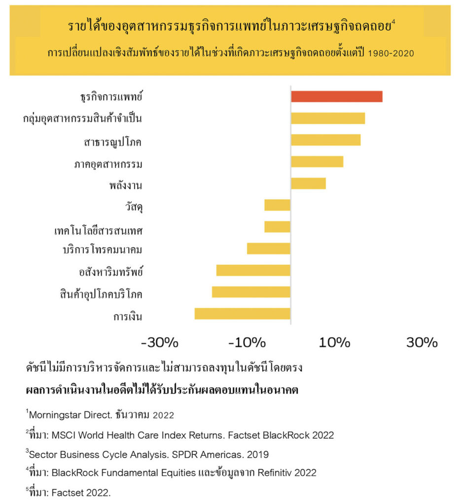 บริษัทหลายแห่งในอุตสาหกรรมนี้พิสูจน์ให้เห็นแล้วว่ามีรายได้แข็งแกร่งกว่าอุตสาหกรรมหลักอื่นๆ ในช่วงที่เศรษฐกิจชะลอตัว รวมไปถึงหุ้นปลอดภัยที่นักลงทุนโปรดปรานอย่างหุ้นสาธารณูปโภคและกลุ่มอุตสาหกรรมสินค้าจำเป็น ยิ่งไปกว่านั้น ปัจจุบัน อุตสาหกรรมธุรกิจการแพทย์ยังได้รับแรงเสริมจากเม็ดเงินที่สะพัดในธุรกิจสุขภาพ สุขภาวะ และวัคซีนอันเป็นผลมาจากโรคระบาด และประชากรสูงอายุที่กำลังเพิ่มขึ้นอย่างรวดเร็วในประเทศเศรษฐกิจขนาดใหญ่